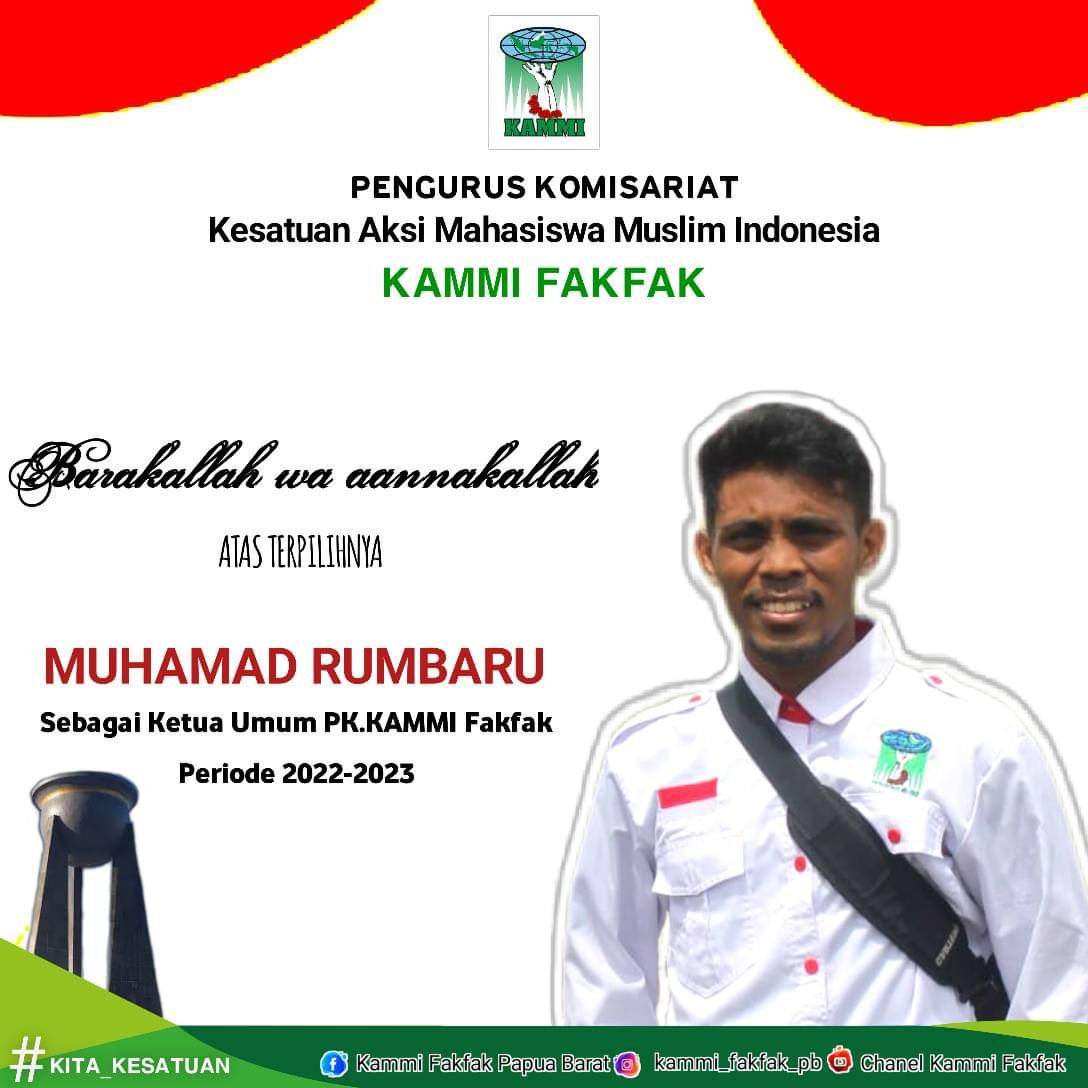 Setelah dilakukan musyawarah maka terpilihlah Muhammad Rumbaru sebagai Ketua KAMMI Komisariat Fakfak Periode 2022 – 2023.